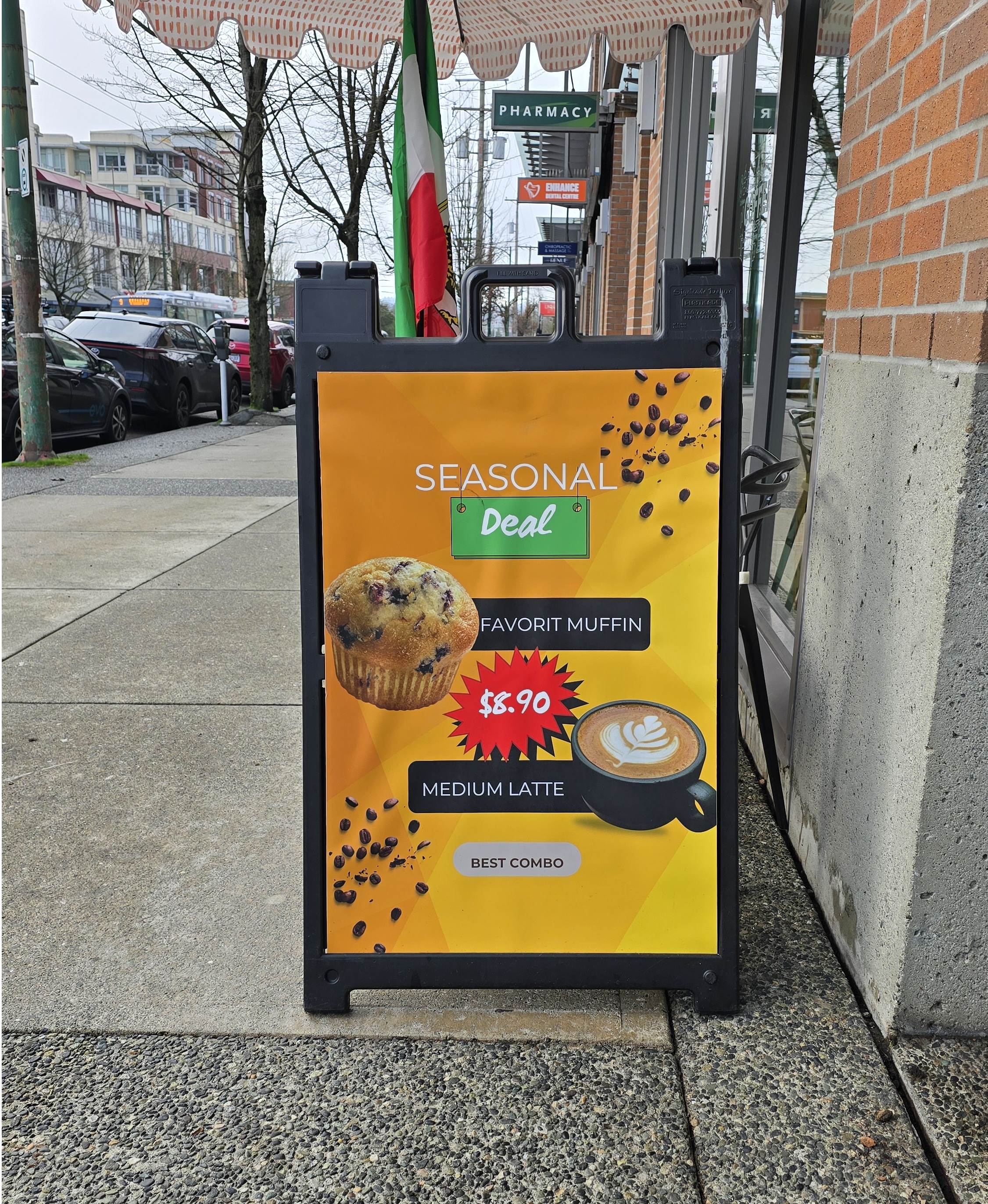 Treat yourself to a delightful duo! Grab our seasonal combo deal for just $8.90: a medium latte paired with your fave muffin—choose from cranberry/orange, blueberry/lemon, chocolate, or raisin/spice. It's the perfect pick-me-up!
